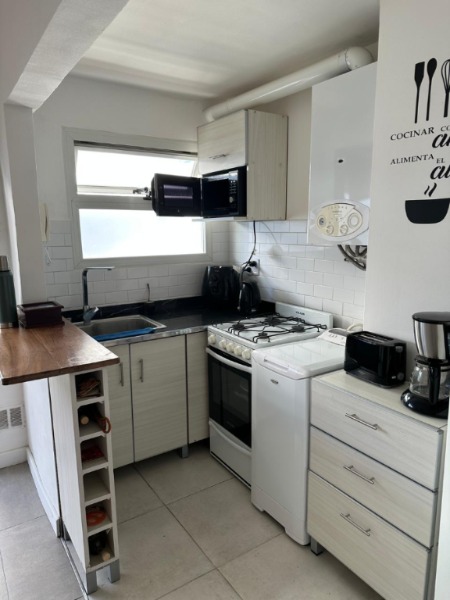 Excelente departamento de 3 ambientes con dependencia, totalmente amoblado y decorado, con una distribución funcional y una gran luminosidad gracias a su inmejorable orientación y ubicación frente a construcciones bajas.